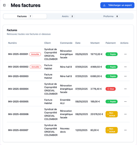 Exportez vos factures facilement.
